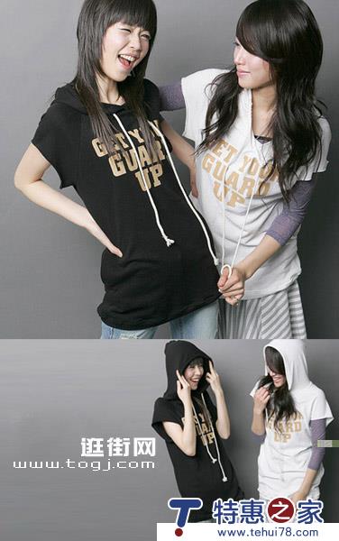 短袖姐妹帽衫一黑一白,色彩对比间却显出我们的协调一致。