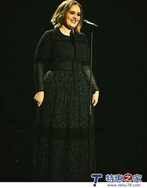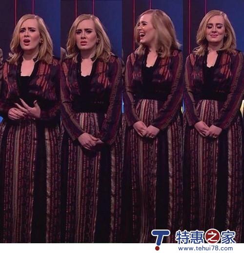 ADELE穿上这种有明显不等宽度竖条纹排列的花花服饰,膨胀效果就消失了。