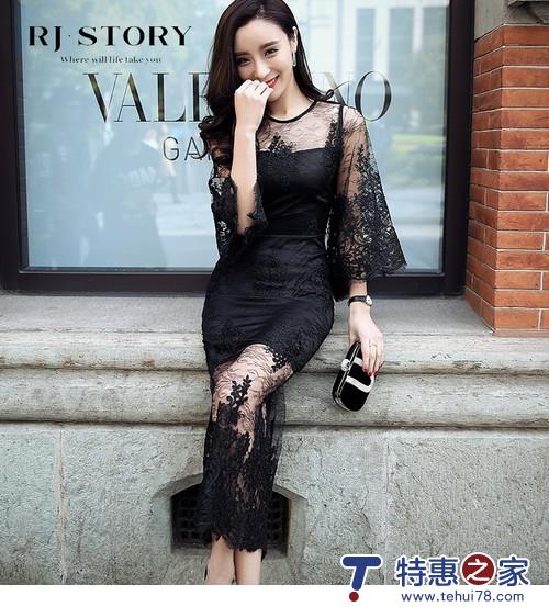 01 面对蕾丝的诱惑,女人永远无法开口说不。妖娆妩媚的黑色蕾丝+极致修身的黑色内衬,双层重叠赋予蕾丝魔法般的透视效果,微微裸露白皙娇嫩的肌肤,纤纤玉臂和修长美腿,让人羡慕不已,“国民女神”非你莫属!
