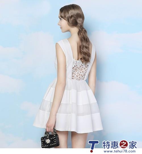 08 如果你觉得背后大片裸露,有点不太习惯,没关系,此款蕾丝镂空公主裙是专门为你准备的。通透的蕾丝装饰,让裸露多了一层若有似无的朦胧美,搭配蓬蓬裙摆,把你打造成一个被人捧在手心的小公主。