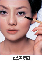 用局部遮瑕膏先在眼下画出放射形线条,再用刷子或手指将其推匀,为了避免拉扯眼周肌肤,要尽量轻。
