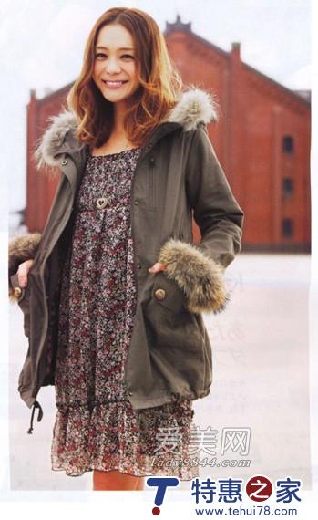 02 碎花连身裙搭配卡其色皮草外套,宽松的款式休闲又好看,浑身散发出迷人气质!