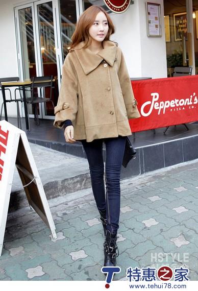 05 斗篷已经渐渐变得不再斗志昂扬,早已经成为高雅与甜美的代表,A字版型,让你在任何场合下都不用担心赘肉跑出来扫兴,其实女性隐藏着的美更具迷人的魅力。驼色毛呢的温柔缱绻,加上波浪的下摆,顿生飘逸之感。