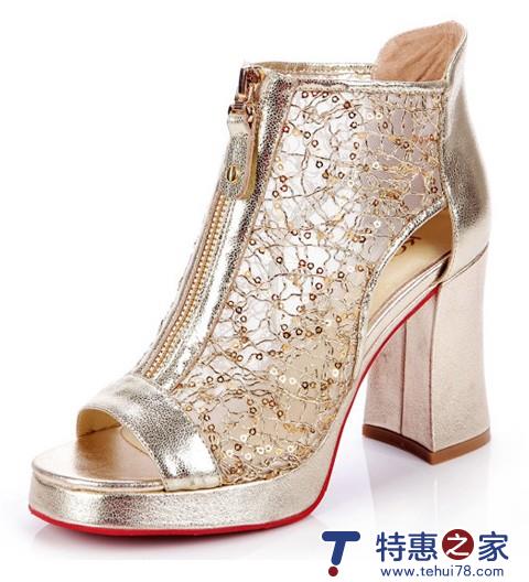 08 高水台缩减了跟高的相对高度,也让高跟鞋的实际高度得以提升。亮片点缀让金属色的华丽感得以提升,与极简主义的单品是绝配。匠心独具的前置拉链不遮不掩,索性让拉链兼具了装饰作用。