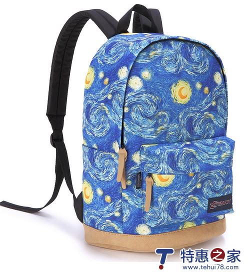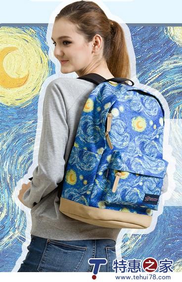 03 我们一起去看星空吧,感受梵高笔下的浪漫世界,蓝与橙黄成就的绚丽、迷幻足以让双眼惊艳,因此无论走到哪里都能吸引住眼球。大容量版适合出行或者作学生背包用,好看又不失格调。