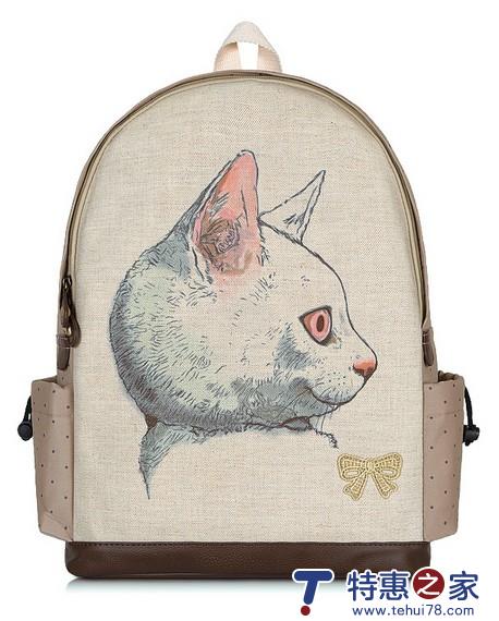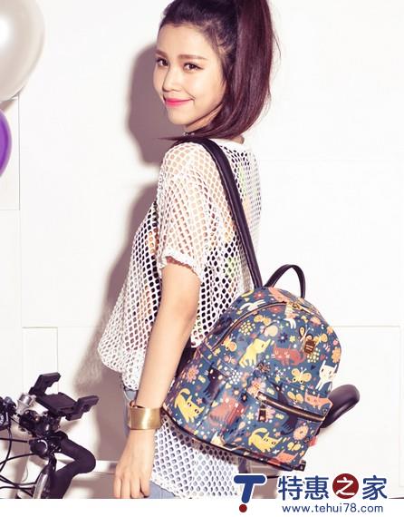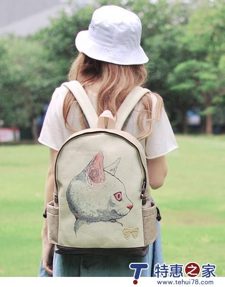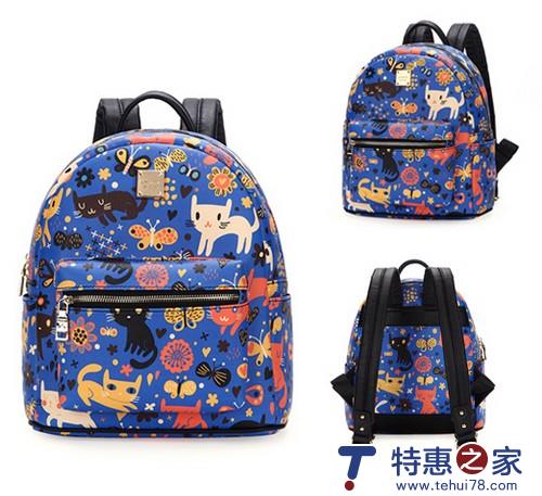 03 充满童趣的卡通印花犹如星空般布满包包表面,活泼又顽皮的小猫咪和蝴蝶花朵玩耍的不亦乐乎,墨绿色的复古感和蓝色的新潮都让人爱不释手。最基础的穿搭加上它也可以变得很出彩哦。