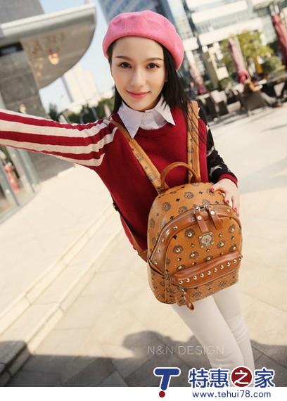 02 只要不是去登山,这样的小号双肩背包应该就可以满足需求了。里面塞上各种小物件之后依旧可以美美的凹造型。同色的铆钉和大号拉链扣作为装饰,纯色的简单之中不乏精致。