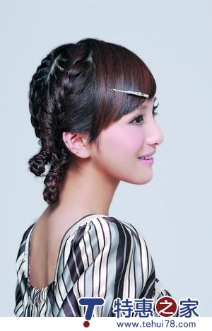 2.如果你没有刘海儿或者刘海儿较长,就需要把不能编入发辫的头发用发卡固定在头顶,整体很齐整,这个发型才好看。