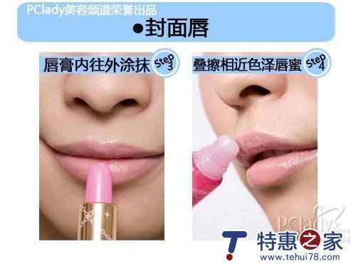3 选择水嫩光泽的唇膏,由唇部中心点向外延伸涂抹,中央的厚度能自然突显唇部嘟翘感。