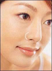 沿着鼻翼的弧线画上细线条,这个部位用遮瑕笔刷会比较方便,份量只要一点点、并且使用和肌肤相近颜色是最恰当的,因为只要遮掉黯沉感就够了,鼻子部位的明亮感还是要以鼻梁为主。