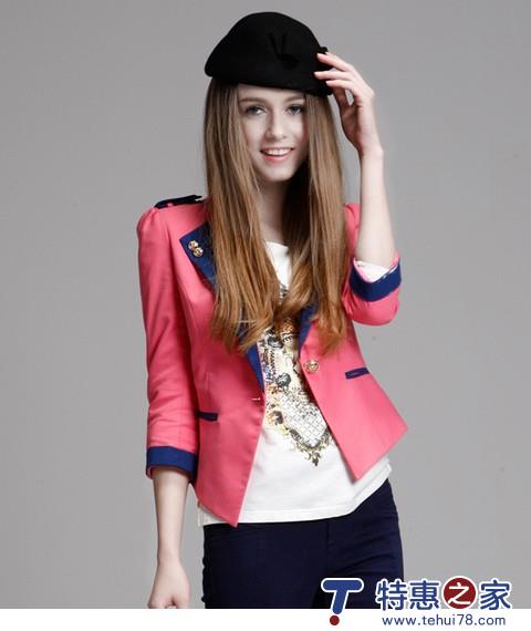 06 皮红拼接亮蓝,不只是色彩上抢眼,款式上也占据着英伦式的典雅先机,撞色翻领虽摇曳经典,但衣领上的金属色钉扣却如胸针般彰显着不一般,与肩章的轻灵俏皮遥相呼应着青春特有的娇俏帅气。