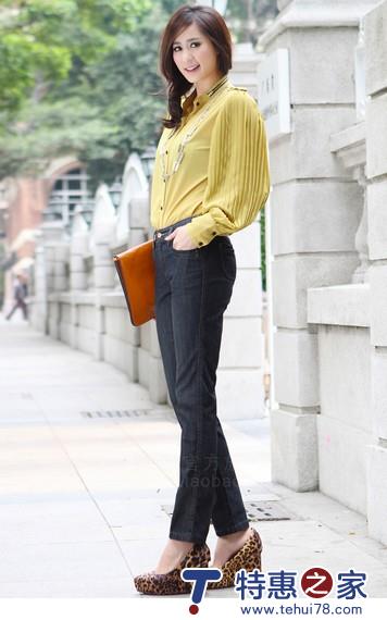 03 牛仔微喇裤,是牛仔裤的一种改良版,牛仔裤的自由、自在特性加上微喇裤的修身修饰功用,牛仔微喇裤变得百搭又修身。在各种场合,无论休闲、逛街、约会,还是上班,矮个菇凉都可以很有面子的显高显高一下。