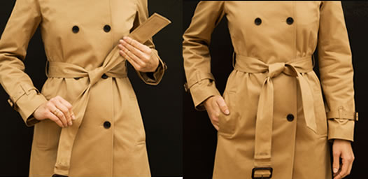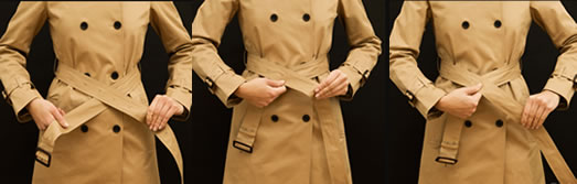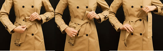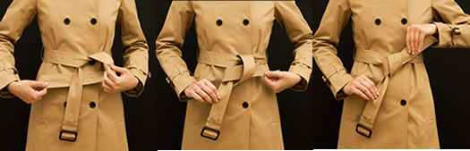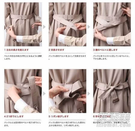 这里为大家带来三种风衣腰带的系法,分别是环扣式风衣腰带系法、蝴蝶结系法和风衣腰带后系法