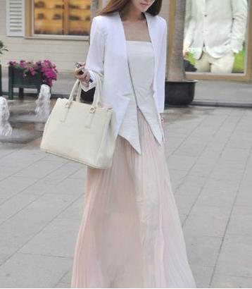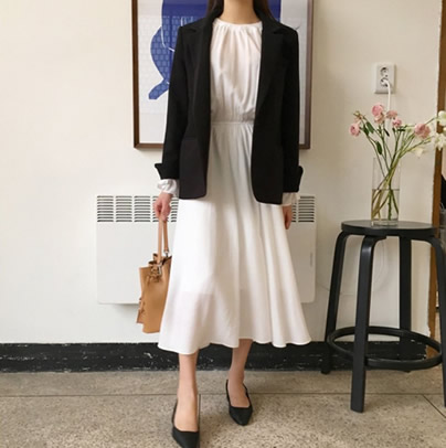 这款白色西装外套,简约纯净的色彩,加上精致流畅的线条剪裁,凸显出韩系的时尚大牌魅力,搭配半身长裙,清新飘逸的优雅女神气质,在街头瞬间亮爆,显瘦高挑都很适合。