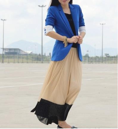 这款宝蓝色西装外套,充满了贵气的色彩,加上这种款服饰更能彰显出优雅女人味,修身的版型又很显瘦,搭配半身长裙,高挑身材瞬间彰显,混合的时尚趋势春季不可缺少噢!