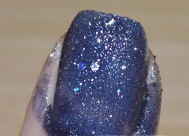 第四步:静待几分钟之后就可以看到指甲周围的甲油开始结膜了,指甲上的甲油也干得差不多,不会轻易被抹掉了。沿着皮肤上蹭到的多余甲油随便找个起点,轻轻撕下来就行哒。