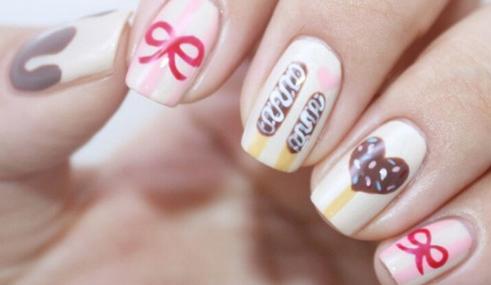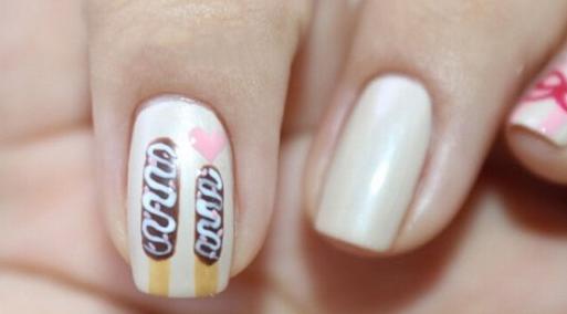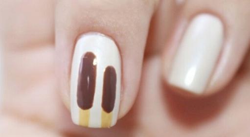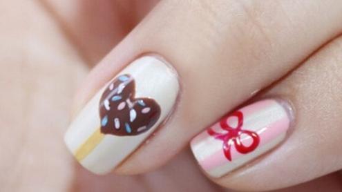 手绘巧克力棒美甲教程