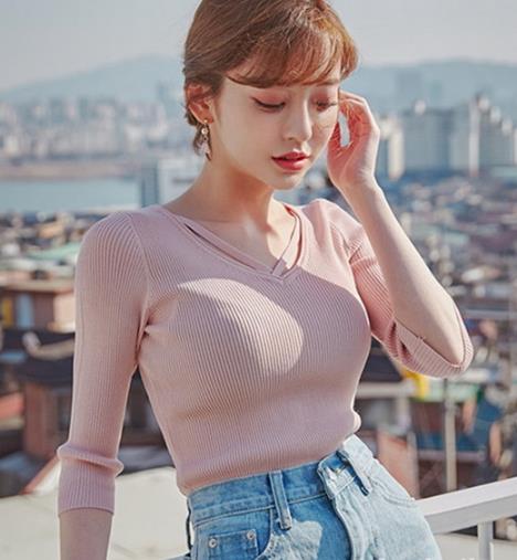 有了V领针织衫,你才会知道什么叫做显气质。一件简单的针织衫,在领口部分做了着重处理。这款针织衫交叉的V领不但能完美修饰脸型,似露非露的锁骨部分也给人一种优雅的美态。针织衫竖版坑条纹面料,针织衫的搭配轻松穿出女神范儿,针织衫想不显瘦都很难。
