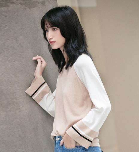 撞色条纹针织衫。秋天就是针织衫的天下,因其独有的垂顺感,无论是单穿还是内搭,都能让你的气质up up up !这款针织衫采用了同色系撞色处理,既温暖又温柔,简约中透着一股精致的优雅。
