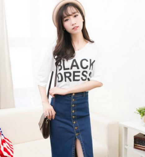 提臀牛仔半身裙。牛仔绝对也是不会过时,每个女生必备的单品。牛仔裙的款式也是多种多样的,这款设计就很独特,一半的纽扣设计,洋气吸睛,下摆开叉设计,露出你迷人的大长腿。长度也是秋天适合的长度。