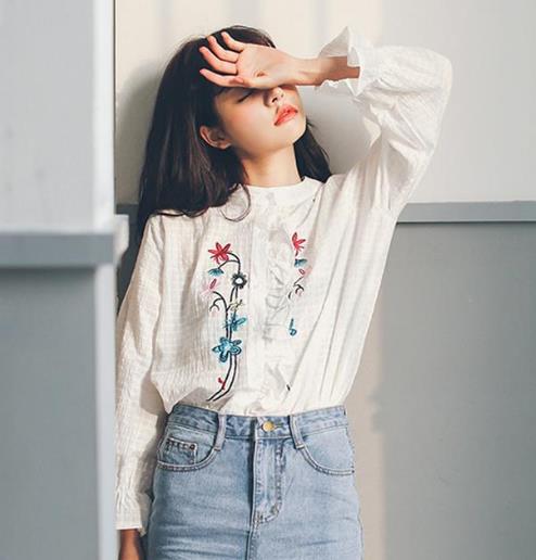 韩国清新学院风衬衫,这种烟真心洋气又自带一种文艺时髦感,BF风的宽松衬衫,简约随意的样式,休闲中带着一点点小性感。