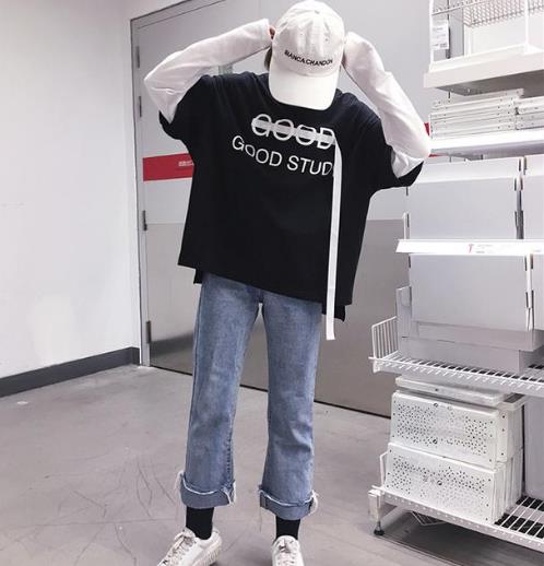 早春衣柜里一定要有时尚显瘦的长袖T恤这款长袖T恤在袖子上做了特别的设计,长袖T恤特别的带感,还有飘逸性,纯黑色系的长袖T恤很适合作为背带裙、外套的内搭呢!长袖T恤单穿也是很好看的,总之长袖T恤就是超百搭!