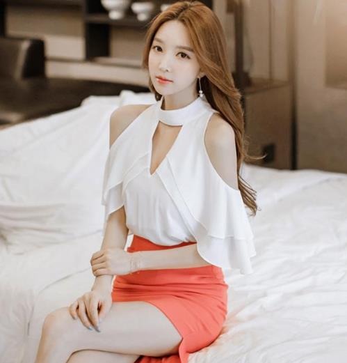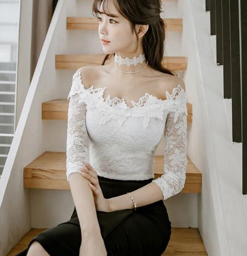 夏季黑色和白色都是必备的搭配单品,一款清新又减龄的一字领蕾丝衫,甜美可人。