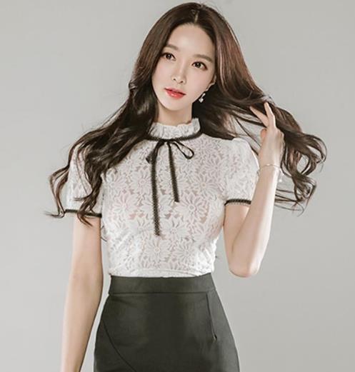 甜美气质的蕾丝短袖,领口系带可拆卸,系成蝴蝶结,为造型增添甜美减龄学院风,也可系成领带结,化身气质办公室OL风——简约搭配素色的裤装,裙装都很nice,轻松打造属于你的风格。
