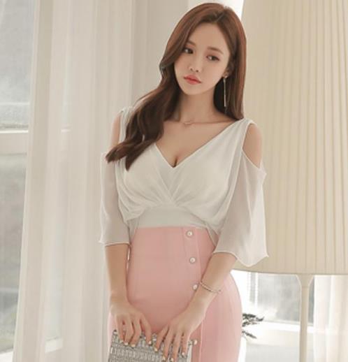 一直都喜欢荷白,安静而优雅,白天鹅般的美艳动人。露肩设计衬托雪白肌肤。
