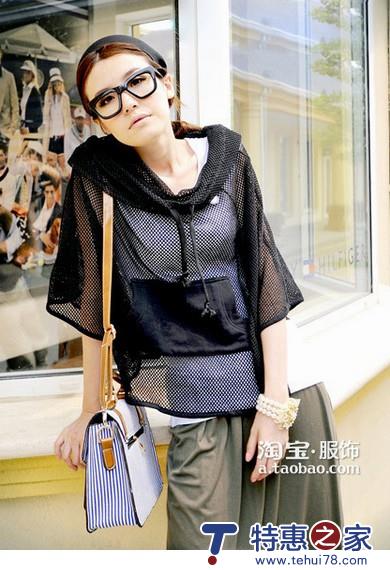 06 极富造型感的网洞式拼接大兜镶边连帽纯色罩衫!时尚而又具防晒的功能性,内搭撞色的无袖背心或是T恤,简约的修身牛仔裤,就能很好的达到视觉反差效果,引出神秘又性感的感觉喔。