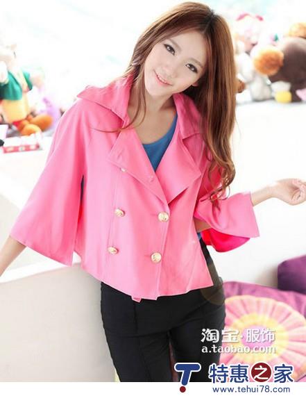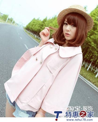 05 淡粉色的短外套,挺括的面料,让衣衣的线条更加的立体,弧度感觉的娃娃领翻领,非常的可爱,略带松垮的A字版造型,时尚浪漫的。