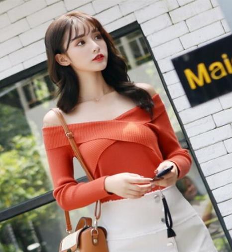 这种一字交叉领,一不小心就穿的太过于风尘气了,一定要选好颜色。暗橙色显白衬肤色,上身轻熟风。