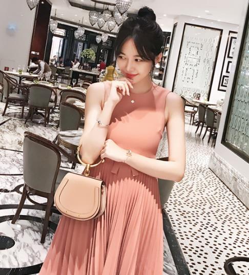 高腰百褶气质连衣裙。超级好看的连衣裙啊,集优雅、复古和精致于一身,看似简约,但是剪裁出众,面料超棒的哦,甜美蝴蝶结加百褶裙身,超级好看。