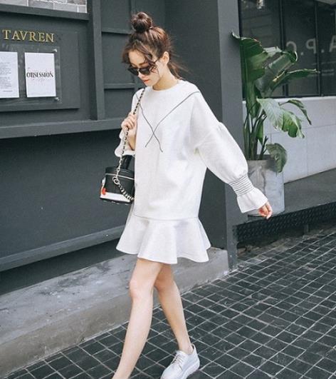 荷叶边连衣裙。黑白条搭配素净的白色,让整件衣服有一种淡淡的校园乖巧感。圆领的设计,将妹子们纤细的小脖子露在外面,显瘦又显气质。利用针织健康打基布,前中绣花车线,手感细腻,亲肤舒适。袖口上方采用横条纹松紧压线,袖口打揽收皱,裙子下摆的荷叶形设计,均带来一种气质淑女风。
