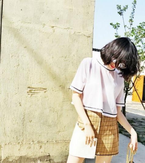 不规则格子包臀裙。拼接与破坏感的设计兼具,选用粗织格纹与人造皮革相拼的面料,轻薄透气,适合夏季穿着。缝边采取反缝拉毛的制作工艺,穿上一两次就会将漂亮自然的破坏感毛边露出来,裙装内连有安全小裤,既安全又时髦。