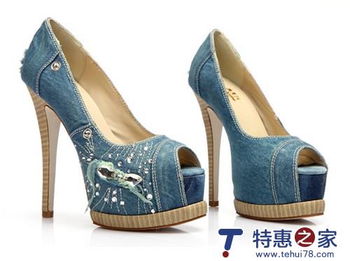 08 果然,复古风的流行不只俘获了衣帽,连脚上的风景也变得优雅浪漫,个性十足。水钻装饰的牛仔布高跟鞋,正迎合着潮流的趋势,闪着璀璨的光芒款款而来。时尚的鱼嘴造型搭配极细的高跟,妩媚妖娆,性感迷人。