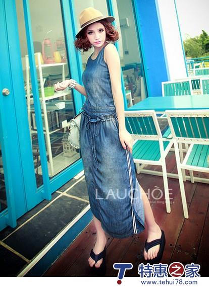 02 这款及至脚踝的牛仔长裙经过设计师的巧思,即使是大面积的牛仔运用,依然可以妩媚迷人。时髦的后开叉,给了双腿最优异的舒展空间,配合无袖的背心裙设计,无疑将性感演绎到极致。