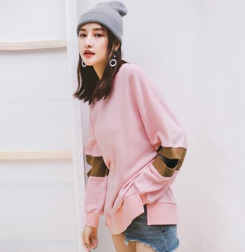 同样是在衣袖处做了些许细节处理,卫衣的风格就大不一样。没有了荷叶边的甜美,撞色设计显然更懂得休闲的真谛。卫衣嘛,不需要太修身,宽宽松松才是舒适的本职,让色彩也跟着慵懒起来吧。