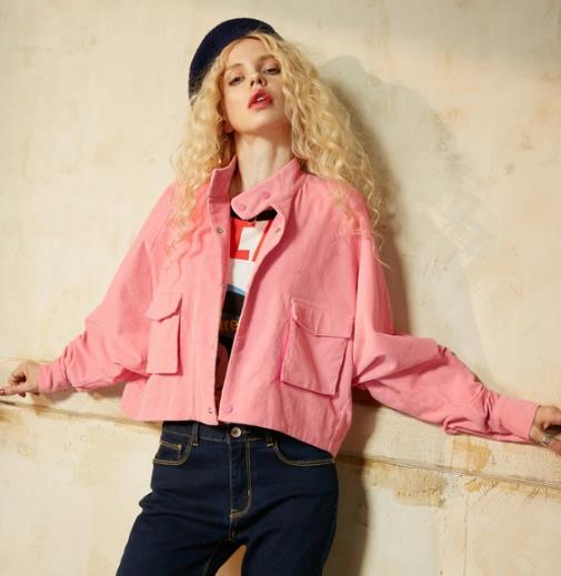我想你不能拒绝超短款外套的存在感,显瘦显高还是短外套最给力,最重要是衣柜里的牛仔裤半身裙都可以重出天日。蝙蝠袖设计原本的洒脱不羁被粉红色包容,大大的口袋让自信不言而喻。