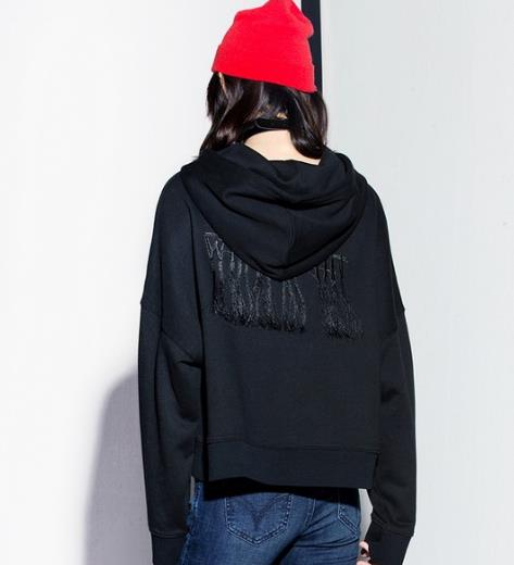 这样的卫衣搭配小脚裤都能美出天际这款卫衣字母刺绣,流苏扫尾,卫衣的搭配帅不止一点,卫衣酷到浪漫丛生,谁的青春没有想过这样的个性,卫衣垮肩宽松中高腰,举手抬头间显露出挑刚刚好,卫衣搭配小脚裤和裙装都能美爆了。