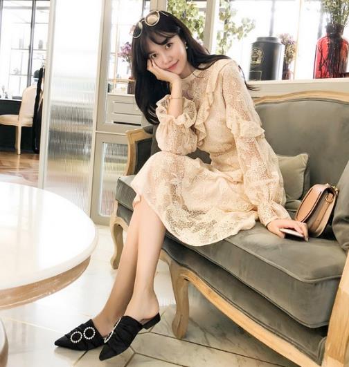 蕾丝连衣裙搭配懒人鞋,时髦优雅不费力。这款蕾丝连衣裙的荷叶边加蕾丝细节饱满,色彩和搭配上就有必要降温与做减法,蕾丝连衣裙温柔的裸粉色与肤色接近,蕾丝连衣裙让遍布裙身的镂空花纹也显得低调恬静,避开高跟鞋,蕾丝连衣裙配穆勒/懒人鞋时髦优雅不费力。